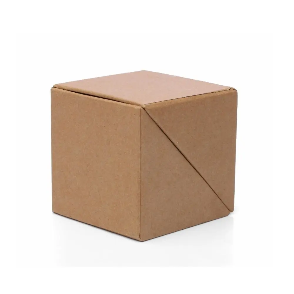 Cubo confeccionado en cartón Kraft marrón de 2 mm de espesor con portalápices.