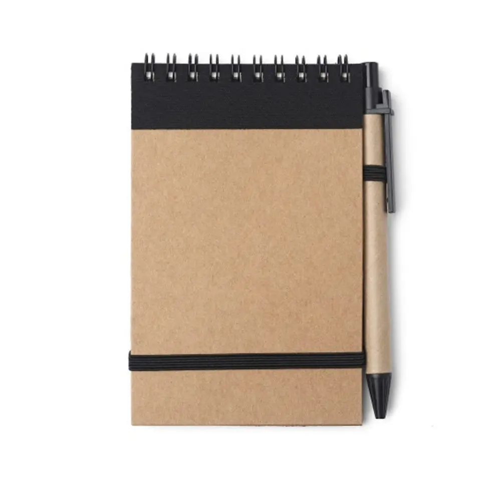 Anotador anillado con cierre de banda elástica y porta bolígrafo.