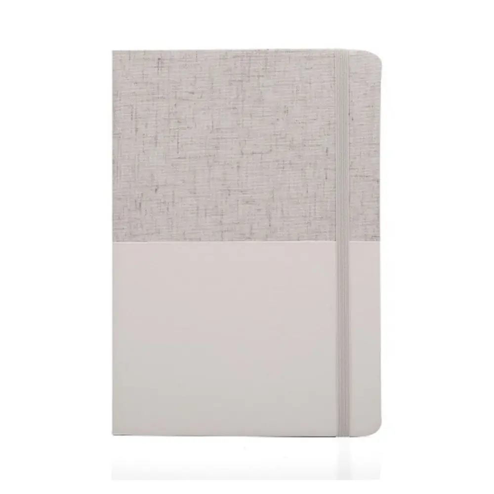 Cuaderno tapa dura forrado mitad en lino y mitad en eco cuero soft mate.