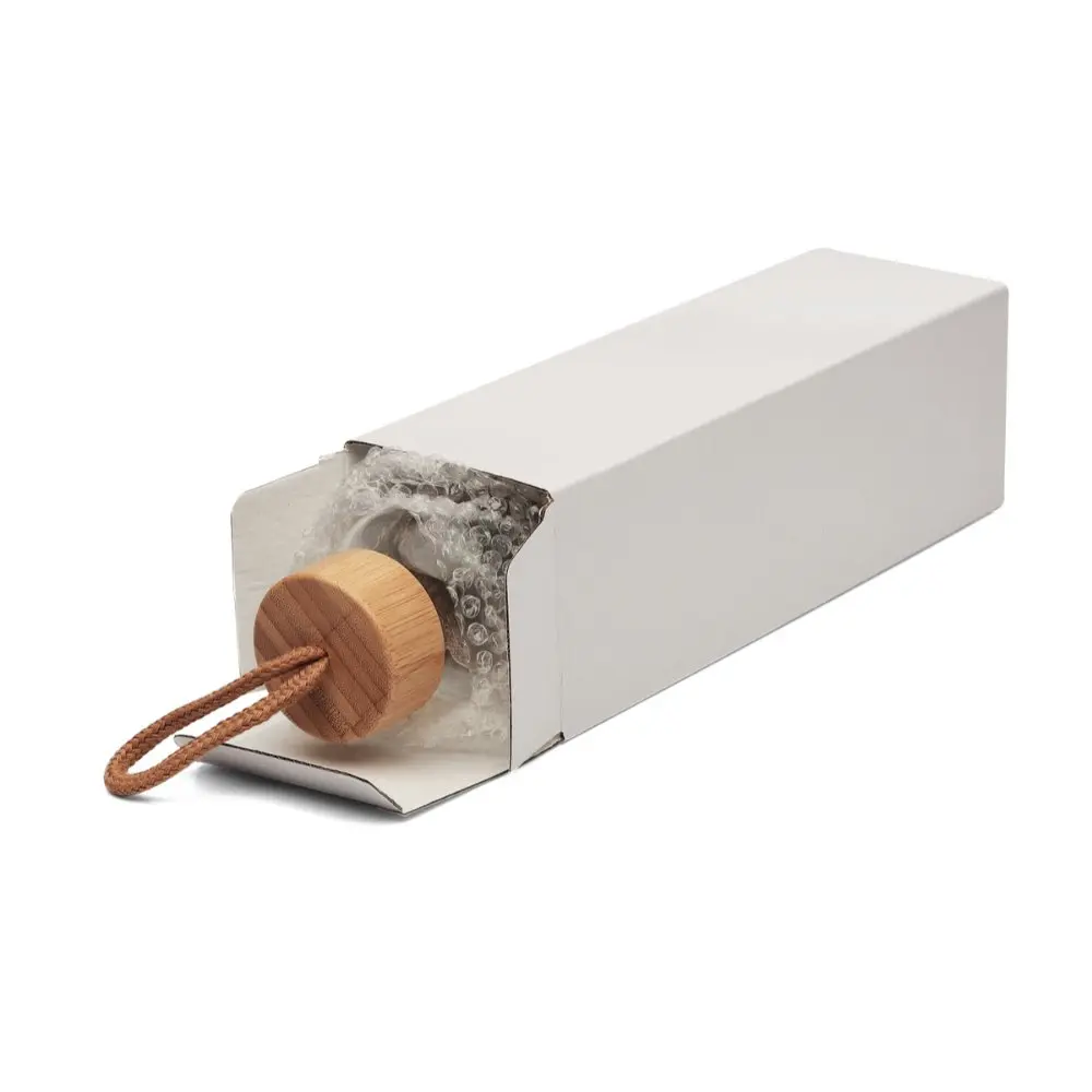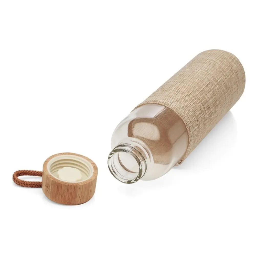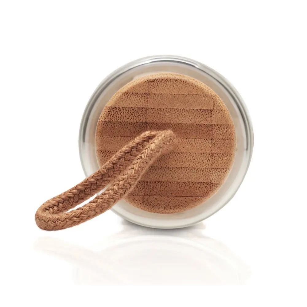 Tapa Bamboo con agarre de cordón trenzado color marrón.